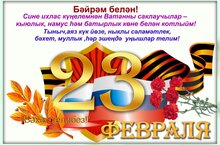 Хөрмәтле ир-егетләребез! Сезне чын күңелебездән Ватанны саклаучылар көне белән котлыйбыз. Сезгә һәм якыннарыгызга тыныч күк йөзе, ныклы сәламәтлек, бәхет-шатлык, рухи һәм матди байлык, һәр эшегездә бары тик уңышлар гына телибез.