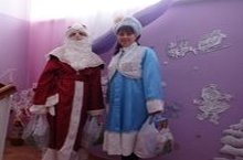 Поздравили сотрудников детского сада Дед Мороз со своей внучкой Снегурочкой.
