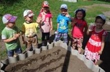 Воспитанники с удовольствием сажают и помогают ухаживать за растениями на грядке.