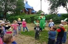 В гости прилетел Карлсон со своими шутками, играми и подарками для июньских именинников.