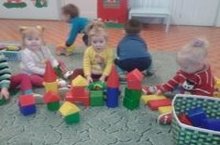 С большим удовольствием малыши играют со строительным материалом, где знакомятся с размерами, формами и цветом, учатся ставить их в ряд или друг на друга, повторяют постройки взрослого.