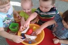 Малыши сегодня знакомились со свойствами и качествами предметов в воде: тонет - плавает, тяжелый- легкий.