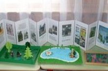 В фойе детского сада открылась выставка поделок воспитанников "По сказкам Тукая". Каждая возрастная группа представила коллективную работу: "Гали белән Кәҗә", "Су анасы", "Шүрәле".