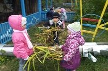 Воспитатель старшей группы Лебедева Е.И. и ее воспитанники уже приступили к осенней уборке своего участка.