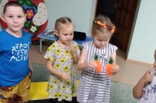 Во время занятия татарского языка с детьми старше-подготовительной группы играли в игру "На морковку!"/Зурлар торкеме балалары белән татар теле шогылендә "Мә кишер" уены уйнадык/Татарской занятиын бадзым-подготовмтельной группаын орчиз "Ме кешыр" шудон.