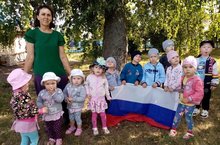 22 августа - День Российского Флага. С детьми младшей группы познакомились с Флагом России и символом России- белой березой. / 22 август - Россия флагы көне
