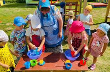 Знакомство со свойствами песка:мокрый и сухой песок. Песочные игры с формочками./ Ком үзенчәлеге белән танышу: Юеш һәм коры ком.