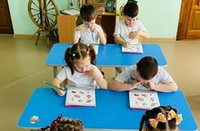 Занятие татарского языка в средней группе. Работа с тетрадями./ Уртанчылар төркеме балалары татар теле шөгылендә./ Шор группаысь пиналъёсын бигер кылын занятие. Рабочий тетрадьёсын ужан.