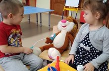 Сегодня дети младшей группы познакомились с медицинскими инструментами и в целях закрепления темы поиграли в игру "Наш зайчонок заболел"./ Бүген кечкенәләр төркеме белән «Куянкай авырган» уенын уйнадылар./ Туннэ покчи группаысь нылпиос тодматскизы медицинской инструментъëсын но юнматизы тодонзэс " Милям луд кеч висе" шудонэн.