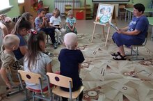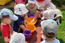 Наблюдение за кузнечком./ Зурлар төркеме балалары белән чикерткәне күзәтү. / Зозэс чаклан.