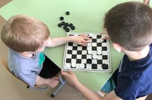 Дети в подготовительной группе любят играть в шашки./ Мәктәпкә әзерлек төркеме балалары шашка уйнарга ярата./ Пиналъёс шашкаен шудыны ярато./