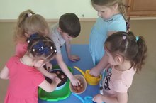 Дети младшей группы сажают лук и знакомятся с его полезными свойствами./ Кечкенәләр төркеме балалары суган утырталар һәм аның файдалы үзлекләре белән танышалар./ Покчи группаысь пиналъёс сугон мертто но солэн пайдаё луэменыз тодматско.