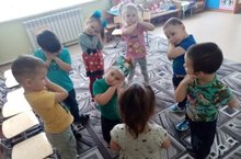 С детьми младшей группы играли в хороводную игру "Мы на луг ходили"/Кечкенэлэр торкеме балалары белэн "Без болында бардык" тугэрек уен уйнадык/Шудон "Ми возь вылын вэтлим"
