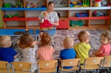 С детьми раннего возраста провели беседу "Кукла Даша у нас в гостях". Рассматривали посуду с русскими народными узорами.Воспитатель: Павлова Г.М.