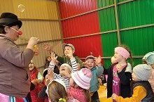 Клоун Клепа порадовал детей: играли в хороводные игры, отгадывали загадки и пускали мыльные пузыри/дәртле музыка астында дискотека булды