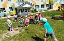 Дети старшей и подготовительной группы играют в подвижные игры.