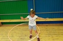 Воспитатель рассказала детям много интересного про спортивное оборудование и организовали веселые игры эстафеты "Прокати обруч", "Каждому свой домик", "Цветные домики", "Перенеси обруч", "Лучшая фигура", "Покрути обруч".