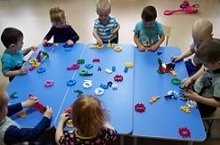 Сегодня малыши строят домик для кошки. Они закрепляют цвета, развивают речь и мелкую моторику./Бүген алар Йомшакка йорт төзиләр. Төсләрне ныгыталар, сөйләм телләрен үстерәләр.