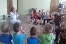 Медсестра Маргарита Владимировна в подготовительной к школе группе провела беседу "Профилактика простудных заболеваний"/Шәфкать туташы уен формасында балалар белән күнегүләр үткәрде