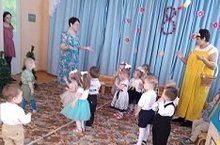 На праздничный утренник в ясельную группу заглянуло грустное Солнышко, а малыши очень постарались и развеселили веселыми песнями и танцами.