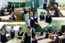 В рамках дня самоуправления, учащиеся 10 класса (Мухин А., Григорьев Р., Габидуллин Д) совместно с учителем истории и обществознания Медведевой Н.Н. провели в 3 классе занятие, посвященное государственным символам Российской Федерации и Республики Татарстан. Учащиеся закрепили основные знания о государственных символах страны.