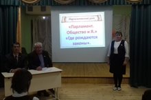 18 октября для учащихся 6-7 классов Артемьева Н.М провела парламентский урок на тему: «Парламент. Общество и я. Где рождаются законы». Учащиеся встетились с депутатами Мало-Лызинского сельского поселения: Мухиным С.А., Артемьевой Н.М. и депутатом Балтасинского городского поселения Гариповым Э.Н. Учащиеся узнали о том, что Конституция определяет устройство нашего государства, об обязанностях, которые несут рядовые граждане и какие права должно им обеспечить государство. Сергей Анатольевич рассказал детям о системе органов государственной власти в Республике Татарстан, о том, где рождаются законы, и познакомил с работой депутатов нашего поселения.