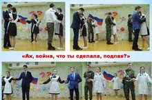 Учащиеся 11 класса (классный руководитель Медведева Н.Н.) в рамках военно-патриотического месячника показали музыкальную композицию «Ах, война, что ты сделала, подлая?». Красивый военный вальс отправил юных мальчиков и девочек на войну.