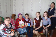 В рамках акции «Поздравь ветерана» члены ДОО «Республика мальчишек и девчонок» Петрова Татьяна, Фасихов Радик, Миронова Диана, ЗДВР Плотниковой Т.В. , глава сельского поселения Мухин С.А, секретарь Михайлова Л.М посетили на дому тружеников тыла, вдов, поздравили с праздником Великой Победы, вручили памятный подарок и открытки.