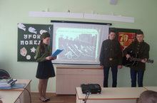В 10 классе Егорова В.В провела Урок Победы на тему «70- летию Победы посвящается…». Учащиеся вспомнили радостные и трагические моменты Великой отечественной войны, познакомились со страшными страницами истории своего народа, гражданской ответственности и чувство долга перед «лицом отеческих могил».