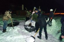 Учащиеся 8 класса совместно с родителями слепили возле школы снежные фигуры. Получились ракета и домик-часы. Мамы и папы смастерили большую снежную горку для малышей.