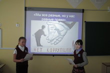 В 8 классе классный руководитель Медведева Н.Н. провела классный час "Мы против коррупции!", нацеленный на правовое воспитание, развитие осознания необходимости соблюдать законы государства, профилактику асоциального поведения. В ходе мероприятия ребята ответили на вопрос "Что такое коррупция?", вспомнили историю её возникновения, перечислили сферы в которых коррупция может проявляться и причины ее возникновения.