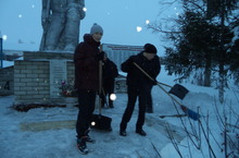 Учащиеся 9б класса организовали чистку памятника. 14.01.2014
