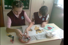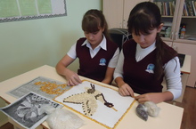 Учащиеся 9 а класса изготавливают панно из семян и листьев.