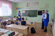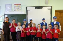 В рамках Всероссийской недели безопасности дорожного движения в гости к первоклассникам пришёл школьный отряд ЮИД. Они напомнили школьникам основные правила дорожного движения, обсудили, как нужно вести себя в роли пешеходов и пассажиров. В конце беседы проверили наличие у них световозвращающих элементов и подарили фликеры.