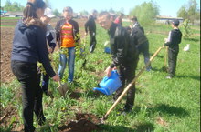 Природоохранная акция "День посадки леса". На территории села учащимися 8б класса посажено 120 саженцев дуба и сосны.