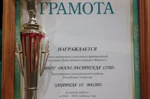 Отряд молодежных (школьных) формирований по охране общественного порядка «ФОРПОСТ» МБОУ «Мало-Лызинская СОШ» занял 3 место в районе по итогам 2018-2019 учебного года.