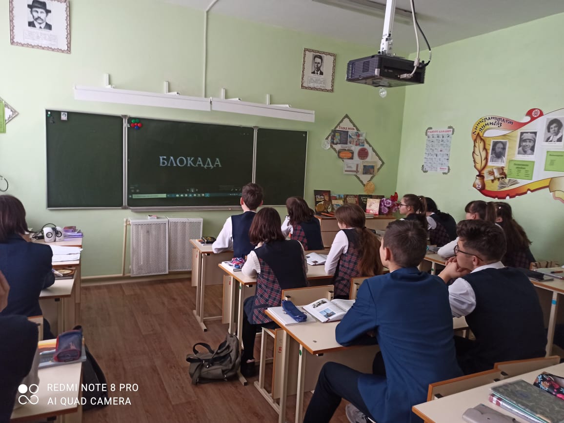 Опубликовано: 27.01.202127 января 1944 года была полностью снята блокада Ленинграда. Ученики 9 класса посмотрели видео и познакомились с героической обороной Ленинграда, который 900 дней находился в кольце вражеской блокады. Ребята узнали о том, что на долю ленинградцев выпали неимоверные трудности и лишения. Они жили под постоянными бомбежками и обстрелами, мерзли, умирали от голода.