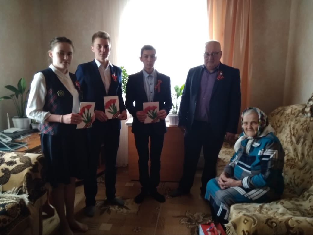 Опубликовано: 29.04.2021В преддверии 76-ой годовщины Великой Победы, 28 апреля, было организовано поздравление тружеников тыла Великой Отечественной войны 1941-1945 гг. Учащиеся 11 класса, совместно с главой "Малолызинского СП" Мухиным С.А., вручили подарки, выразили слова глубокой благодарности за подвиги, героизм и тяжёлый труд. От всего сердца пожелали крепкого здоровья, мирного неба над головой, благополучия.
