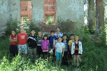 III сыйныф укучылары һәм сыйныф җитәкчеләре Хабибуллина Кифая Тәлгатовна - Хәтнә янындагы XIX гасырда төзелгән иске "Пётр һәм Павел" чиркәве янында.