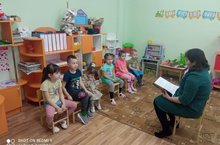 Безгә кунакка Кенәбаш китапханәсендә китапханәче булып эшләүче Энҗе Галиахметова килде. Ул балаларны Шарль Перро әкиятләре б/н таныштырды.Балалар бик кызыксынып "Кызыл калфак әкиятен тыңладылыр, язучы әсәрләренә ясалган рәсемнәрне карадылар, әкиятләр буенча ясалган раскраскаларны буядылар.
