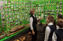 "Хранители истории", "Движение Первых" и их наставники советник директора по воспитанию Самигуллина Г.Т., педагог- организатор Иванова С.В. посетили школьный музей.