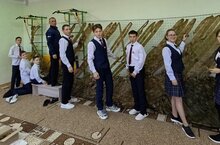 Коллектив школы, волонтёры, юнармия, добровольцы, "Движение Первых" сплели две маскировочные сети для наших бойцов, находящихся в зоне СВО.