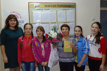 Сегодня тимуровский отряд 6-7 классов (кл.рук.Плотникова Е.Н.) поздравили Марфугу Набиевну с Днем пожилого человека. Девочки подарили красивый букет цветов и открытку, сделанную своими руками.