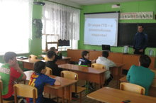 Учитель физкультуры Фаниль Фаилович провел урок ГТО, о нормативах и правилах сдачи ГТО.