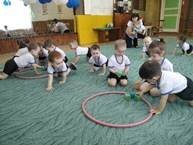 Нәни төркем балалары куңелле уеннарда җитезлекләрен, өлгерлекләрен күрсәттеләр.