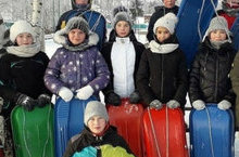 Учащиеся 5-6 классов во время каникул катались на саньках,весело провели время.