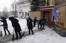 Учащиеся 6 класса почистили от снега памятник,поставленный погибшим в годы Великой Отечественной войне.