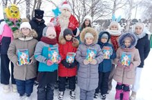Учащиеся 1 класса с акктивистами Движения Первых, самыми первыми встретили Деда Мороза. Они рассказали Деду Морозу стихотворения, получили подарки.