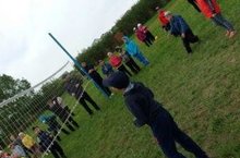 Отрядлар арасында пионербол ярышы узды. Барлык малайлар, кызлар да тырышып уйнадылар.