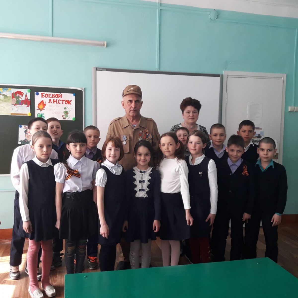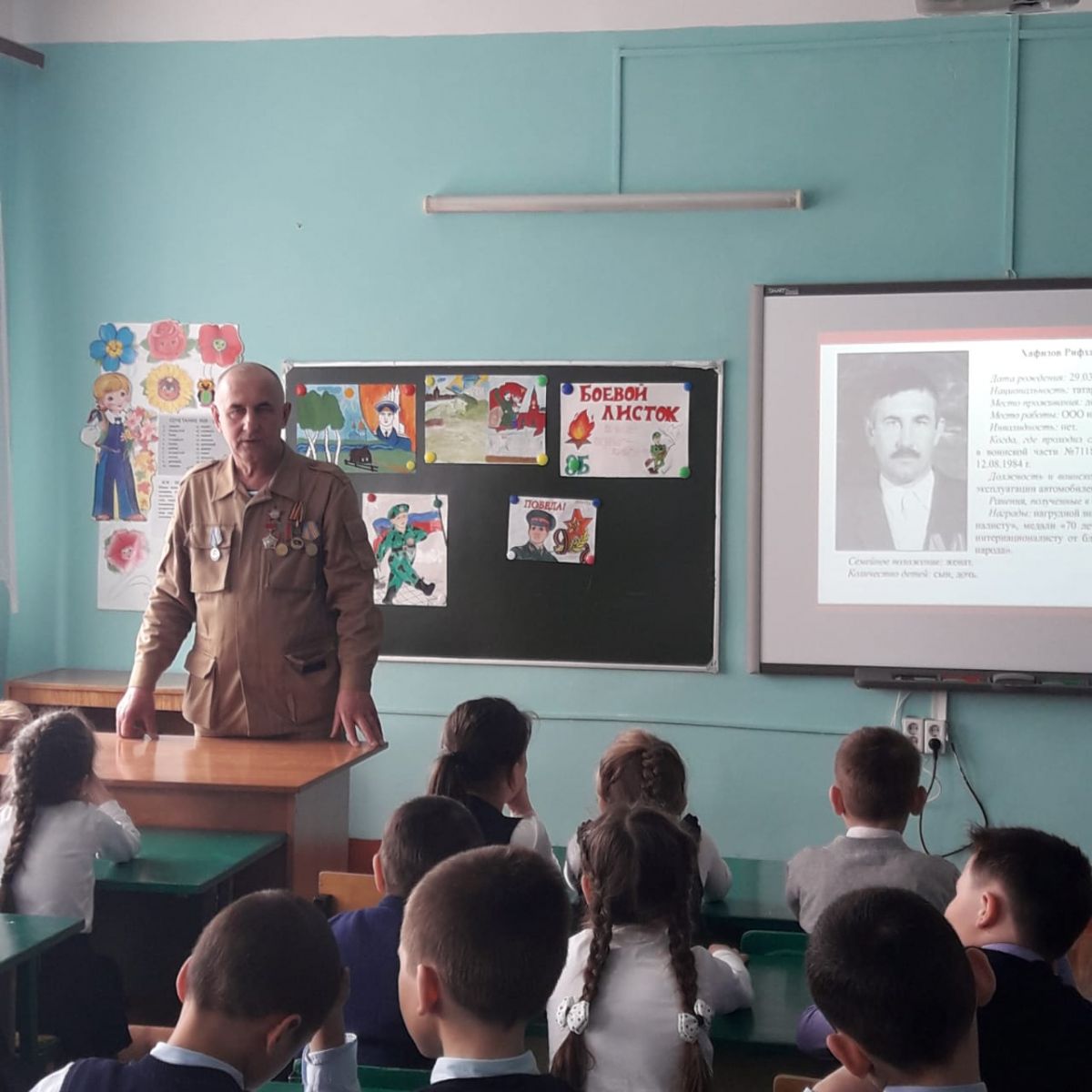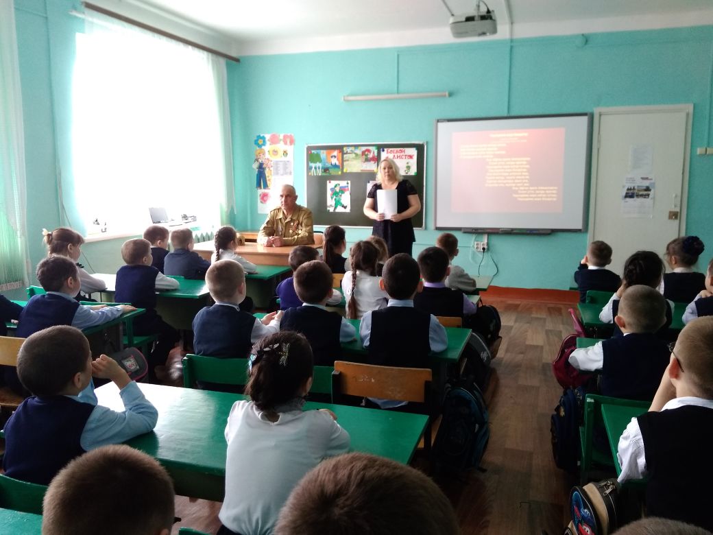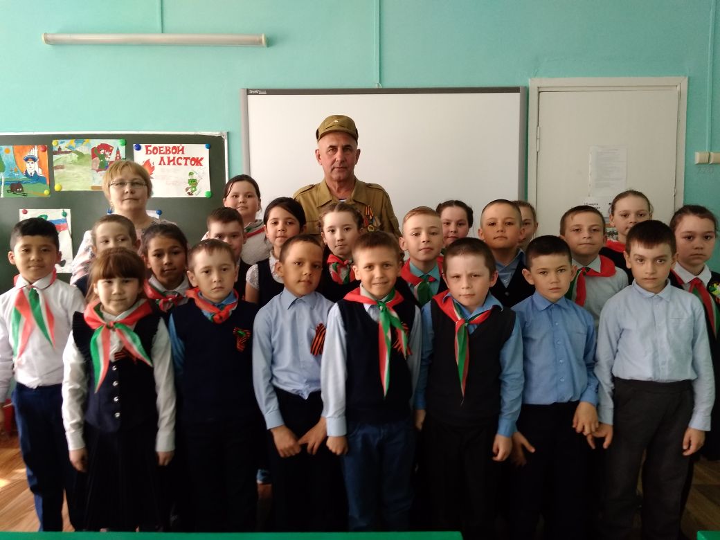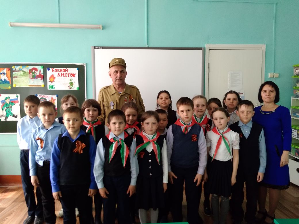 В рамках проекта "Шаги Победы" были проведены уроки Победы. Учащиеся 1 – 4 классов приняли участие на встрече   с ветераном Афганской войны Хафизовым Р.Х.